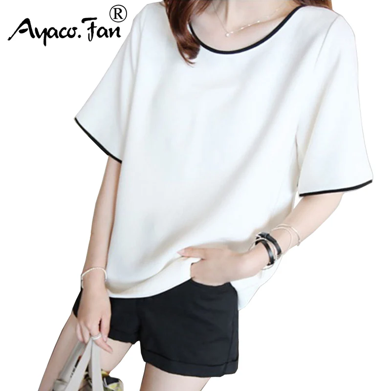 أرغب في شراءمعلومات اضافية فضفاض عارضة تي شيرت الصيف جديد س الرقبة قصيرة الأكمام الصلبة المرأة تي شيرت للفتيات طالب أسود أبيض سيدة قمم المحملات زائد حجم