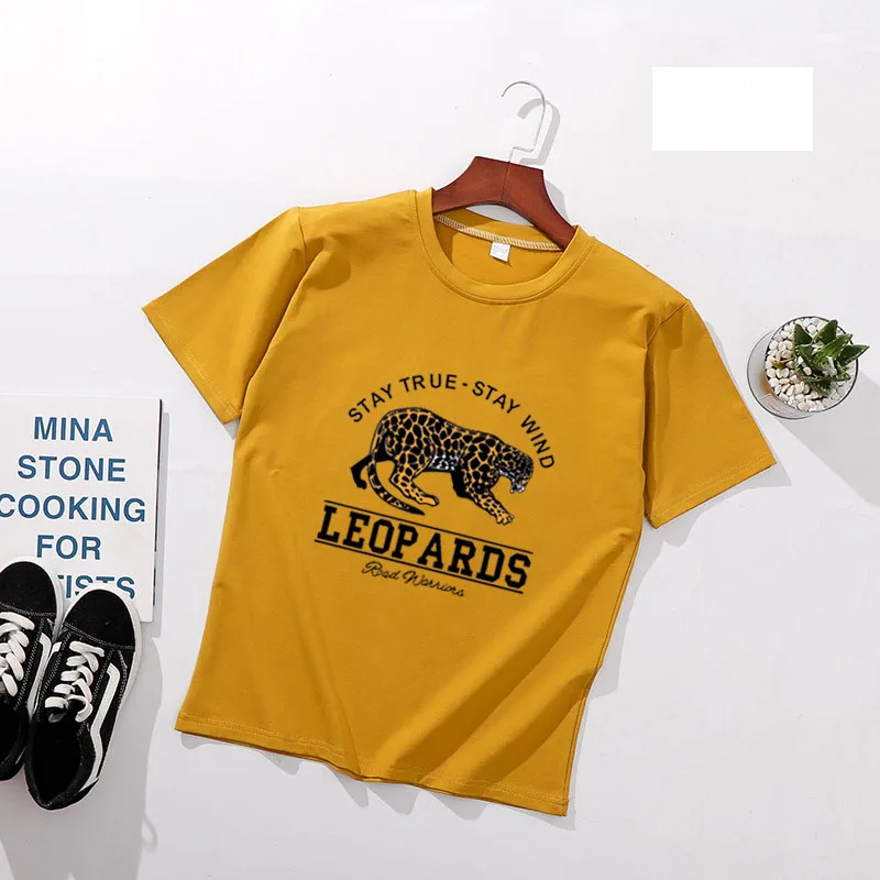 المنتجات ذات الصلة ل Tees و ليوبارد طباعة المرأة تي شيرت الربيع الصيف قصيرة الأكمام يا الرقبة القطن دنة النساء قمم تيز صالح سليم المرأة تي شيرت