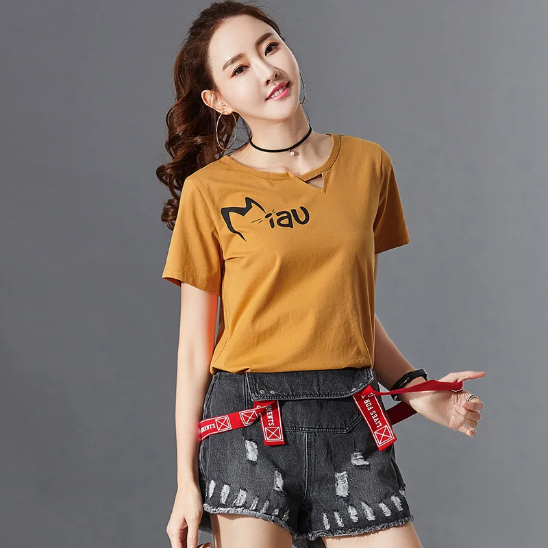 OKOUFEN الرموش تي شيرت جلدة نعرفكم ل سيدة أعلى قميص مطبوع جديد أزياء لطيف قصيرة الأكمام الإناث فام أعلى المحملة هبوط السفينة