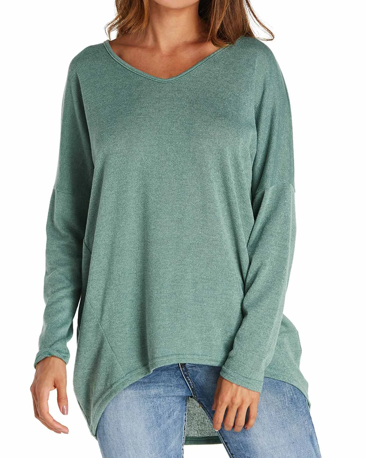 البحث عن معلوماتمعلومات اضافية 2019 الربيع النساء الصلبة تي شيرت ZANZEA عارضة فضفاض مثير الخامس الرقبة Batwing كامل كم طويل السترة غير النظامية قمم المحملات زائد حجم