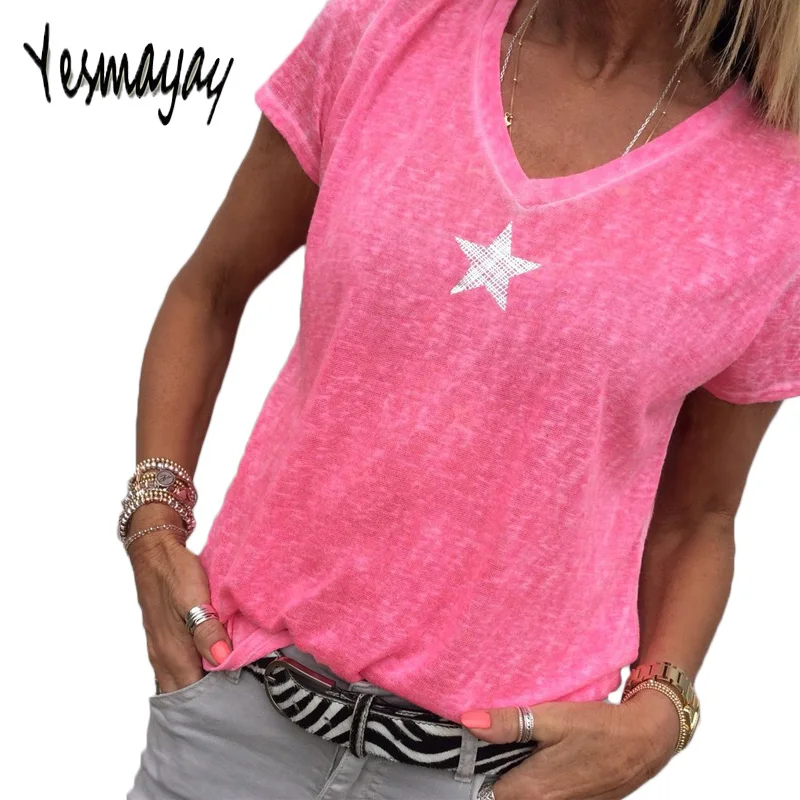 شراءمعلومات اضافية التي شيرت المرأة زائد حجم 5XL عارضة الخامس الرقبة المرأة القمصان قصيرة الأكمام المحملة قميص فام غراندي Taille Camiseta موهير T قميص المرأة