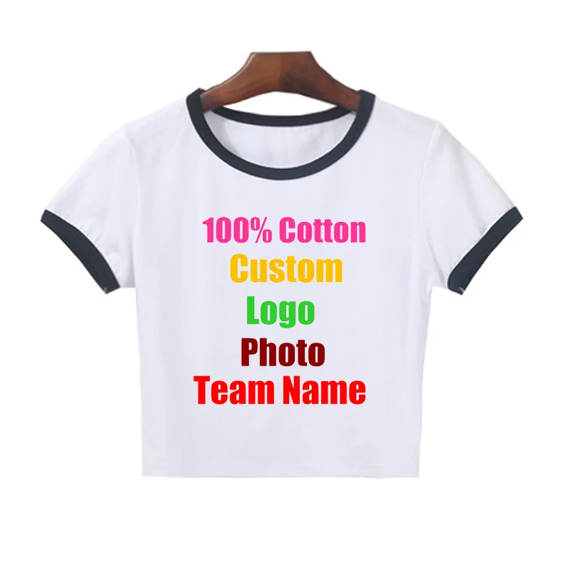 المنتجات ذات الصلة ل Tees و مثير ضئيلة عالية مطاطا القطن المرأة المحاصيل القمم قميص مخصص logo نص صورة مطبوعة تيز سيدة الأزياء فاسق الهيب هوب الروك القمصان