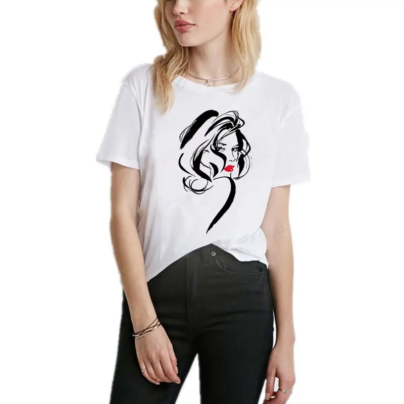 صور من الأزياء طباعة المرأة التي شيرت عارضة مضحك t قميص لسيدة فتاة أعلى المحملة محب قصيرة الأكمام الإناث تي شيرت