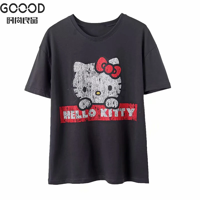 المنتجات ذات الصلة ل Tees و كيتي الكرتون تي شيرت مطبوع 2019 المرأة القطن تي شيرت الصيف عارضة قصيرة الأكمام س الرقبة رمادي تي شيرت السيدات لطيف المحملة الأعلى