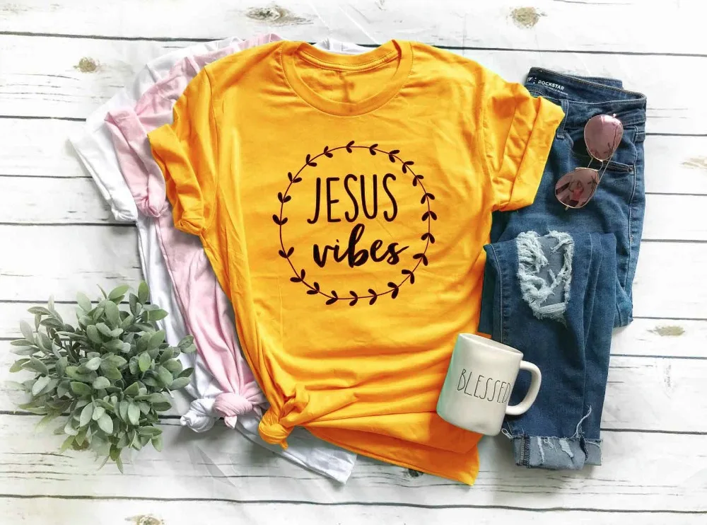 استعارات ل الصيف فضفاض حجم المرأة التي شيرت 80% القطن س الرقبة قصيرة الأكمام يسوع المشاعر المحملة قميص فام المتناثرة قميص Camisetas موهير الجرافيك