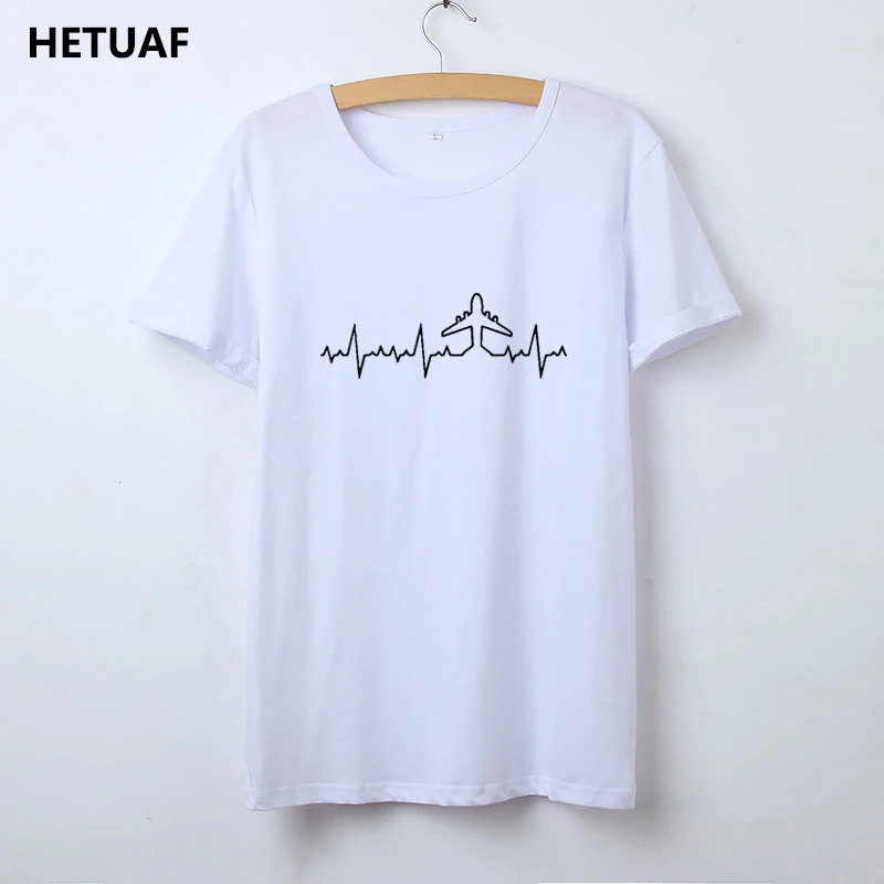 معرض ل HETUAF نبضات الطائرة الطيار T قميص المرأة الرسم س الرقبة تيشيرت مطبوع قميص فام القطن نعرفكم المرأة التي شيرت أعلى Camisetas موهير