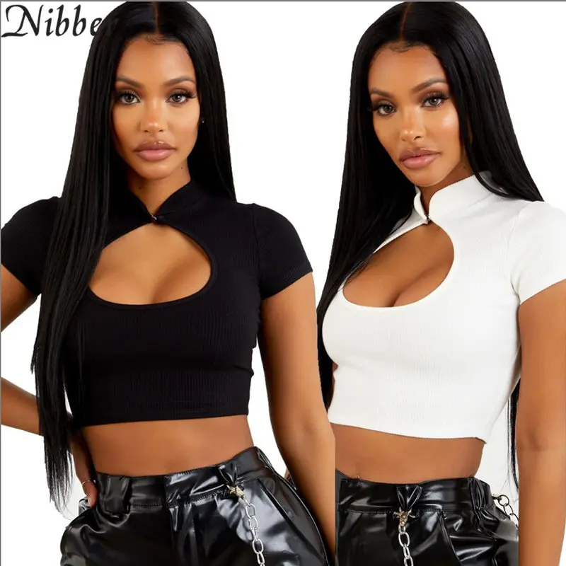 البحث عن معلوماتمعلومات اضافية Nibber الصيف مثير الأبيض المحاصيل الأعلى المرأة التي شيرت camiseta 2019 الربيع جديد أزياء مكتب سيدة الشارع الشهير الترفيه قصيرة الأكمام تيز